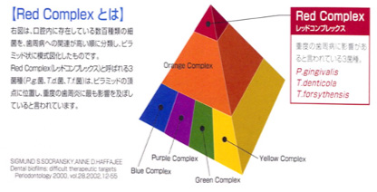 関わるといわれている3つの歯周病菌(レッドコンプレックス)がいる